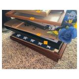 Partial List: 2 Door Large Wooden/Glass Hutch, Vintage 7pc Wooden Dining Room Table, Vintage Heritage Cabinet w/ Motorola Record Player, Vintage Raggedy Ann and Andy Dolls, Antique Victrola Record Player, Vintage Thomasville Wooden Dresser and Mirror, Vintage Thomasville Wooden Chest of Drawers, Vintage Blue Floral Hand painted Hurricane Lamp, Vintage Wooden Cabinet, Philippi Covered Bridge Framed Art, La-Z-Boy Blue Plaid Couch, Knitted Cuckoo Clock, Shark Air Purifier, Jewelry Box w/ Costume Jewelry, Vintage Oreck XL Vacuum, Electric Hurricane Lamps, Tom Clark Cairn Sculptures, Vintage Lane Wooden and Marble Top Coffee Table, Vintage Highland Grove Dairy Milk Bottle, Ray Day American Landmarks Collection, Wooden Bowls and Butter Molds, 6 Gallon Two-Toned Crock, Vintage Milk Bottles, Green and White Metal Glider, Chairs and Table Set.
