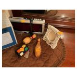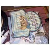 Vintage Furniture, Collectibles, Timothy Wolf Cairn Sculpture, Vintage Milk Bottles and Books