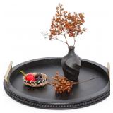 24 Inch Large Farmhouse Wall Clock, Rustic Antique Wood with Metal Circle and Large Engraved Numerals, Silent Battery Operated Wall Clock for Office Kitchen Bedroom Living Room