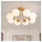 Y'INSP 26.38 in. 8-Light Brass Modern Semi-Flush Mount Ceiling Light Fixture Mid Century Globe Chandelier with Milk Glass Shade