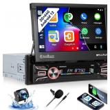 SIXTOP 2+64G Android 13 Single Din Car Stereo 7 Inch Motorized Flip Out Touchscreen with Wireless Carplay Android Auto Mirror Link Various Theme GPS Navi FM RDS DSP SWC Bluetooth WiFi+AHD Camera & MIC