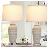 25" Farmhouse Jar Table Lamps Set of 2, 3 Way Touch Control Rustic Bedside Lamps with USB A+C Ports & AC Outlet, Pot Nightstand Lamps for Bedroom Living Room (LED Bulbs Included)