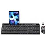 - 【Ultra-Slim and Portable Design】Wireless pc keyboard has 14.55x5.5x0.8in(37*14*2cm), 0.8in(2cm) ultra-thin ABS plastic body, which can save space and easy to carry. Kit keyboard and mouse wireless’s sleek design is super match with office desk. Perfect for business travel, office, home, library and many public occasions.