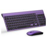 Wireless Keyboard and Mouse Ultra Slim Combo, TopMate 2.4G Silent Compact USB 2400DPI Mouse and Scissor Switch Keyboard Set with Cover, Batteries Included, for PC/Laptop/Windows/Mac - Purple Black