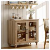 WAMAPT Sideboard Buffet Cabinets with Glass Door, Kitchen Storage Cabinets, Wood Coffee Bar Tables with Adjustable Shelf, Accent Sideboard Storage Cabinet Table Dining Room, Living Room,Oak 34 inch