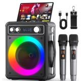 Karaoke Machine, Portable Bluetooth Karaoke Speaker with 2 Wireless Microphones, PA System for Adults Kids with LED Lights & Echo Adjustment, Supports TWS/TF/USB/AUX for Home Party
