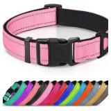 Joytale Reflective Dog Collar, Soft Neoprene Padded, Metal D-Ring, Nylon Pet Collar Adjustable for Small Dogs, Pink, S