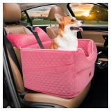 Dog Car Seat - Memory Foam Dog Booster Seat for Small Dogs Up to 25lbs-Elevated Pet Car Seat with Storage Pockets and Dog Seat Belt-Soft Pet Travel Bed for Front & Back Seats-Removable Washable-Pink