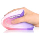 Lekvey Ergonomic Mouse, Vertical Wireless Mouse Rechargeable 2.4 GHz Optical Carpal Tunnel Mouse : 800/1200/1600 DPI, 6 Buttons, for Laptop, PC, Mac, Computer, Desktop, Notebook etc, Pink to Purple