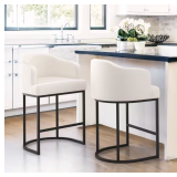 (141) 35.2 in. Modern Beige Fabric Upholstered Barrel Counter Stool with Black Metal Frame Counter Height Bar Stool Set of 2