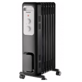 - 1,500-Watt Oil-Filled Radiant Electric Space Heater with Thermostat. 3 heater settings 600/900/1500-Watt, Safety auto shut-off and Safety tip-over switch.