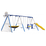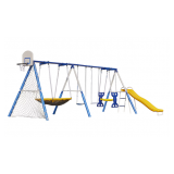 - Add fun for your little ones to your backyard when you bring out the AGame Huddle Up Playset. This set comes with a 6-foot slide, a basketball hoop with a basketball goal, a soccer goal, 2 large sling seats and a saucer swing for lasting fun.