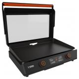 (36) Blackstone 22-Inch Electric Griddle - 1600W Non Stick Ceramic Titanium Coated Stainless Steel Tabletop Griddle with EZ-Touch Control Dial, LCD Display, Patented Rotate & Remove Glass Hood - 8001
