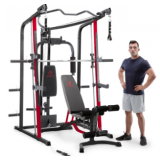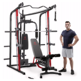 - 14-gauge steel construction with powder coating and chrome guide rods provides long-lasting use. Multifunctional weight bench allows for full-body workouts