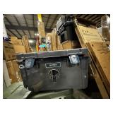 - Equipped with square tube legs and foot plates for additional stability. Locking lid latch safeguards against unauthorized access