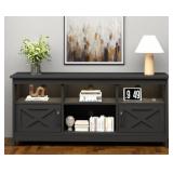 MSRP$259.99 Farmhouse TV stand with 4 open spaces and 2 cabinets, perfect for entertainment needs. Harmonious Blend of Styles