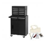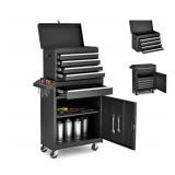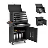 5 Drawer Rolling Tool Storage Cabinet with Detachable Top Tool Box Liner Universal Lockable Wheels Adjustable Shelf - Black