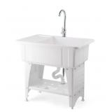 ROVSUN 32" x 22" Utility Sink Laundry Tub with Faucet & Shelf & Drainboard White