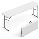 VINGLI 6 FT Narrow Folding Table, Tabletop Folded in Half, Premium Quality HDPE Material and Sturdy Metal Frame, Perfect for Buffet, Seminar, Party, Training, Home Work, White