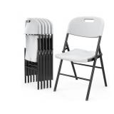 VINGLI Folding Chairs, Heavy Duty Foldable Chair Portable HDPE Plastic Seat with Steel Frame for Indoor Outdoor Dinning Party Wedding School Use, White, 6 Pack