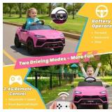Lamborghini 12V Kids Ride On Car with Remote Control, Battery Powered Electric Car with 4 Wheels, USB, Ride On Toys for 3+ Years Olds Girls Boys, Pink