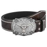 WesternStyle Men Belt for Pants Engraved Pattern Waist Belt Male Accessories (M/L)