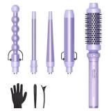 Wavytalk 5 in 1 Curling Iron,Curling Wand Set with Curling Brush and 4 Interchangeable Ceramic Curling Wand(0.5”-1.25”),Instant Heat Up,Include Heat Protective Glove & 2 Clips (Purple)