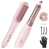 Wavytalk Hair Straightener Brush,Sleek Sweep Ionic Straightening Brush with 6 Temperature Adjust, Anti-Scald Ceramic Hair Straightener Comb Fast Heating for Home Salon, Dual Voltage, Rose Gold