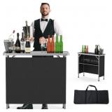 VINGLI Portable Bar Table, 2-Tier Shelves, Mobile Bar Table for Events, Party, Camping, Picnic, Tradeshow, Indoor with Black Skirt, 39 "L x 34" H