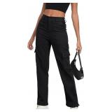 Women's High Waisted Cargo Pants Baggy Y2K Streetwear Stretchy Pants with 6 Pockets Ankle Drawstring (L)