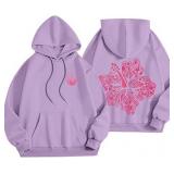 Womens Cute Pink Flower Hoodie Aesthetic Preppy Hawaiian Hibiscus Sweatshirt Casual Puff Graphic Hoodies Pullover Tops SIZE M