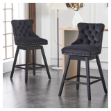 (183) TEWLOSS Swivel Counter Height Bar Stools Set of 2 Velvet Barstools for Kitchen Island (26", Black)