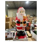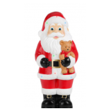 Celebrate the holidays with this 2.5 ft Santa holding a Teddy Bear with LED Lights porch greeter. It features a Santa dressed in his traditional red suit while holding a teddy bear in his left arm. This cheerful and inviting porch greeter is the perfect addition to your holiday decorations. A built-in timer lets you automate on/off settings, and a battery-operated design enables wire-free placement anywhere indoors or within outdoor covered spaces.