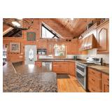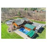 Well Built Log Home W/Covered Front & Rear Porches, Attached 4 Car Garage As Well As 1 Car Garage In basement. Main Floor Features Great Room Living W/Open Kitchen, Dining Room And Living Area W/Vaulted Wood Ceilings & Stone Gas Fireplace. Primary Bedroom W/Bath & Walk-in Closet On One End Of The House & 2 Bedrooms & Full Bath On The Other Side, Basement Has A Finished Rec. Room, Utility Room. Outdoor Features Include Inground Swimming Pool With Covered Outdoor Kitchen & Living Area.