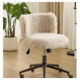 Shaggy Fabric Adjustable Height Swivel Task Chair in Off-White with Armless