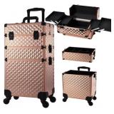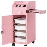 Winado Hair Salon Storage Cart with Wheels & 3 Hair Dryer Holders & 4 Drawers & Lock & 2 Keys, Hairdressing Tools Station Mobile Makeup Case, SPA Utility Trolley (Pink)