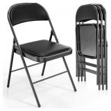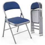 VINGLI 4 Pack Folding Chairs with Padded Seats, Metal Frame with Fabric Seat & Back, Capacity 350 lbs, Blue, Set of 4