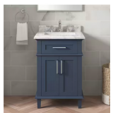 (20) Sonoma 24 in. Single Sink Midnight Blue Bath Vanity with Carrara Marble Top (Assembled)