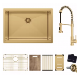 (152) 32 in. Undermount Single Bowl 18-Gauge Gold Stainless Steel Workstation Kitchen Sink with Spring Neck Faucet