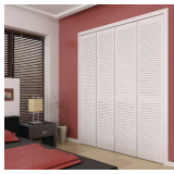 (12) 36 in. x 96 in. Shadow Louver Solid Core White Primed Smooth Wood Bi-fold Door with Hardware