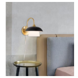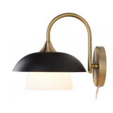 - Introducing the Mid-Century Modern 1-Light Gold Black wall sconce, the epitome of understated elegance for your home. With its sleek downbridge arm, metal and glass shade and clean lines, this sconce effortlessly combines modern and vintage vibes, creating a bold and well-desired look. Whether you have an eclectic or mid-century modern theme, this wall sconce is the perfect addition.