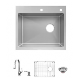 Dolancourt Tight Radius 25 in. Drop-In Single Bowl 18 Gauge Stainless Steel Kitchen Sink with Pull-Down Faucet