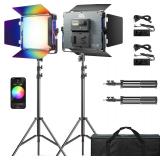 - 【Powerful RGB Video Light】This professional video light features 542 SMD LED beads (190 cool white, 190 warm white, and 162 RGB LEDs), offering a wide color temperature range from 2500K to 10000K and dimming from 0 to 100%. With 360° RGB color control and an ultra-high CRI 97+, it delivers true-to-life color reproduction, making it ideal for vlogging, portraits, weddings, product photography, gaming, and more.