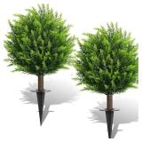26.5" Artificial Cedar Topiary Ball Trees, Set of 2 UV Resistant Fake Evergreen Trees Shrubs Bushes Artificial Plants with Ground Spike Faux Cypress Plants for Indoor Outdoor Front Porch Garden
