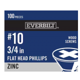 10 Packs #10 x 3/4 in. Zinc Plated Phillips Flat Head Wood Screw (100-Pack) by Everbilt