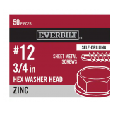10 Packs #12 x 3/4 in. Zinc Plated Hex Head Sheet Metal Screw (50-Pack) by Everbilt