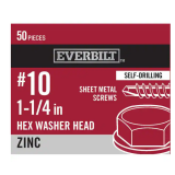 5 Packs #10 x 1-1/4 in. Zinc Plated Hex Head Sheet Metal Screw (50-Pack) by Everbilt