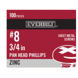 5 Packs Everbilt #8 x 3/4 in. Zinc Plated Phillips Pan Head Sheet Metal Screw (100-Pack)