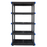 The Kobalt Ventilated Polypropylene Shelving unit provides rust-resistant, moisture-reducing storage for garages, basements, and utility rooms. Designed with adjustable feet for stability on uneven floors, it supports a 225 lb weight capacity per shelf and offers customizable storage with a 5-tier configuration.
