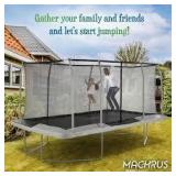 Bring bouncing fun to your backyard with the Upper Bounce Rectangle trampoline for kids and adults. Along with an easy assembly structure, our trampoline jumping mat and trampoline frame, are tested to be UV and water-resistant, offering you a safe and long-lasting fun investment. Our trampoline jumping mat is made of premium PP mesh material having state-of-the-art 8-row stitching. This provides additional security and prevents the mat from tearing, ripping, or deteriorating over time. The top flex pole enclosure system offers amazing stability and durability verses regular poles, in addition, to 90 ultra-bounce heavy-duty galvanized 7" springs for bursting strength and maximum bouncing! The pole foam sleeves are made of strong vinyl material for added comfort and protection. You will enjoy many years of safe fun on your new trampoline with no worries at all. Our trampolines with safety pads are super safe to use and are excellent for any backyard. The thick trampoline safety pad ensures absolute safety for your children. Our trampolines can support up to 500 lbs. of weight. Equipped with high-end galvanized trampoline springs. Machrus Upper Bounce trampolines provide tremendous jumping momentum and bursting strength for a controlled and responsive jumping experience. It features a sturdy metal and spring construction that ensures your child will enjoy years of fun without worrying about breakage. It is the right size for any outdoor/backyard setting. And its jumping surface offers ample space for your little ones to channel all their energy. This trampoline also comes with an in-depth user manual to make assembling more manageable. Let's go out and play!
